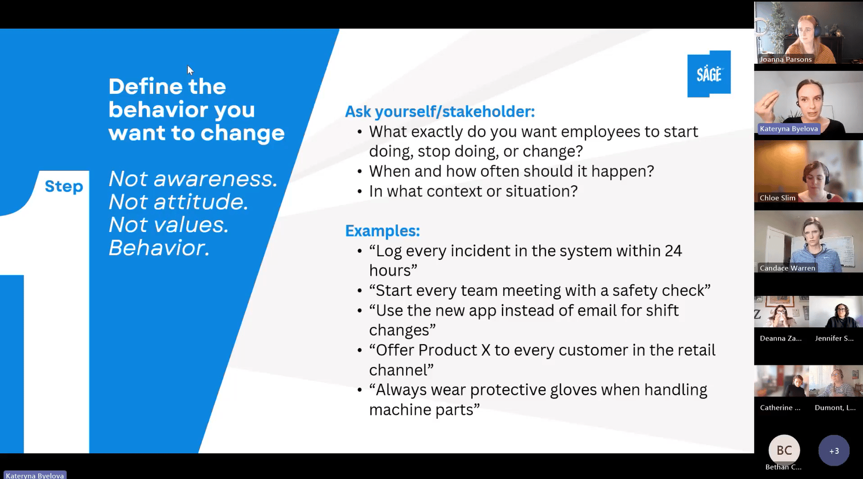 The first is attitude: does the employee see the personal value in this behaviour? Kateryna was emphatic, she says we spend too much time explaining why the company needs employees to change and not enough time explaining what's in it for the individual.